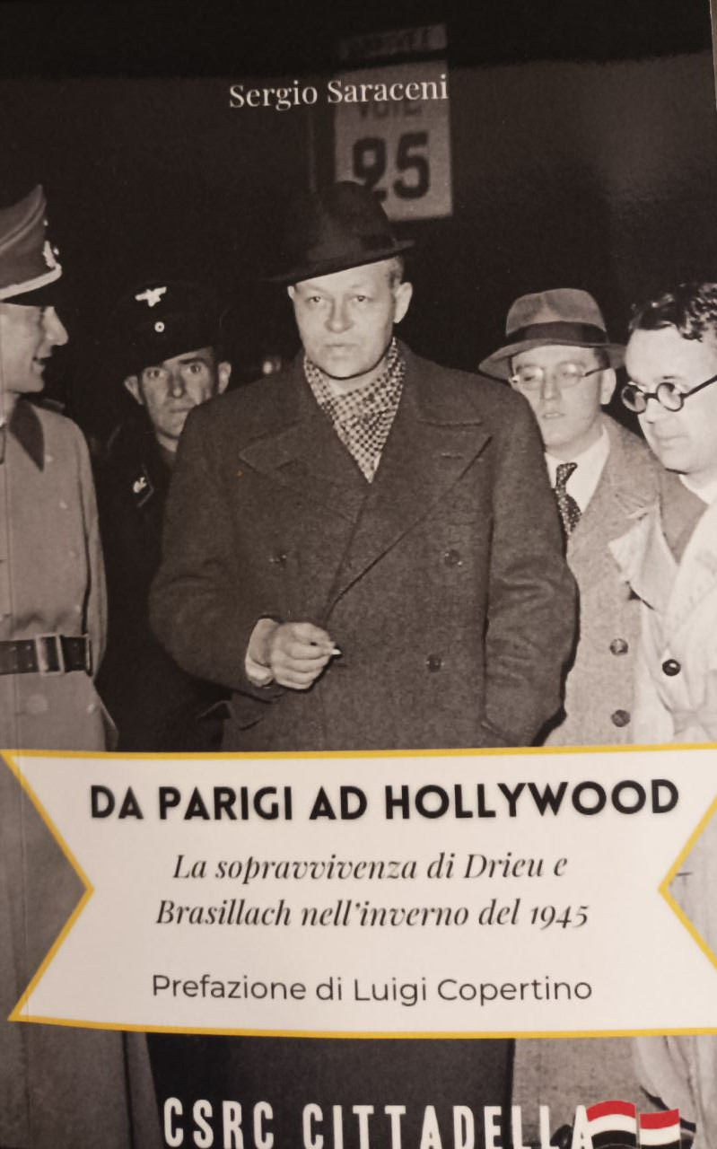 Infatti, grazie all'intervento di Maurras, che organizza la loro liberazione e la partenza verso gli Stati Uniti, i due, sotto falso nome e come marinai, vengono imbarcati nella nave che li avrebbe trasportati e giungono a destinazione dove vivranno fino alla fine naturale della loro vita. Non voglio togliere al lettore la scoperta, attraverso la lettura, di come questa nuova vita di sopravvivenza, vissuta soprattutto ad Hollywood e da qui il titolo e il sottotitolo del libro, viene raccontata da Saraceni. Di sicuro è agganciata alla loro esperienza precedente vissuta in Francia, sulla quale Saraceni si sofferma a lungo; non hanno dimenticato la loro amicizia e il loro sforzo di comprendere e vivere momenti appassionati attorno alle nuove idee che erano circolate nel ventennio precedente lo scoppio della guerra. La prima parte del racconto, per l'appunto, si svolge soprattutto a Parigi, dove Drieu La Rochelle e Brasillach godevano di un posto importante nella cultura letteraria francese dl tempo. Erano conosciuti ed apprezzati: il primo, più incline verso una vita sregolata e combattuta; il secondo più composto e attento. I dialoghi fra loro, un pò asciutti, offrono le chiavi per comprendere la loro amicizia, le esperienze comuni e le idee che sviluppavano attorno al "Fascismo immenso e rosso" e per "combattere il declino". La prefazione di Luigi Copertino, tuttavia, ambienta, con ricchezza di particolari, la loro vita nel contesto storico del tempo.